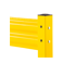Double Rail: Standard 44”H columns are designed to support two parallel rails. Made from 5” x 5” x 1/8” thick steel welded to a 10” x 10” x 1/2” baseplate. Columns are punched with (4) 3/4”ø holes on each side and are topped with a blast plastic cap. Baseplates are punched with (4) 3/4”ø holes for floor anchors. Powder-coated safety yellow paint finish.