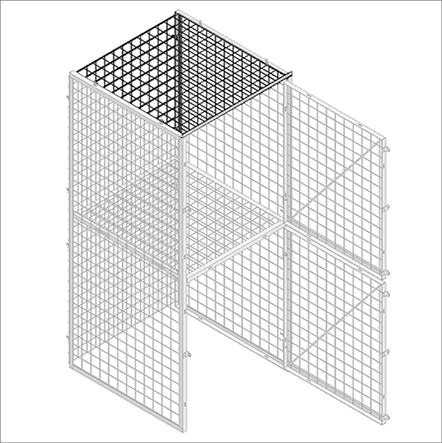 Roof panels are made of framed 2” x 2” x 6&8GA or welded 2” x 4” x 10GA wire mesh with 1 1/4” x 1 1/4” x12GA transom angle.
