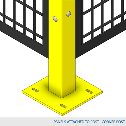 Posts are made of 2” x 2” x 16GA seam welded square tube. Base plates are made of 6” x 6” x 1/4” steel plate and punched with four holes for anchor bolts. Anchors are sold separately as an accessory.