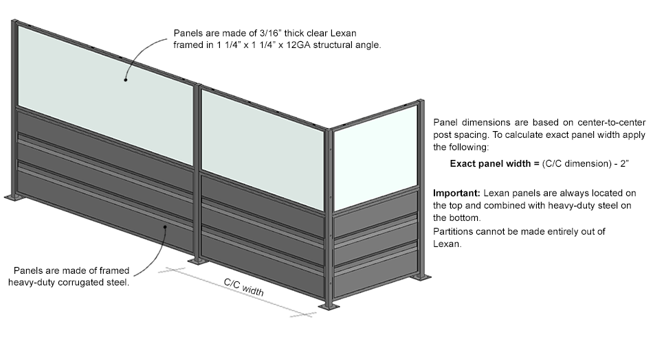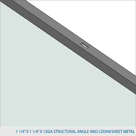 Panels are made of 3/16” thick clear Lexan and heavy-duty 16 GA corrugated steel framed in 1 1/4” x 1 1/4” x 12 GA structural angle.